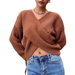 24種類の欧米の国境を越えたchi秋のフランスのレトロな交差vネックのコウモリの袖のゆったりしたニットのプルオーバー