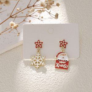 欧米のクロスボーダーのかわいいアニメはクリスマスのイヤリングの高級感の女性の非対称の耳飾りのクリスマスの装飾品を入れます。