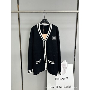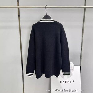 潮牌24秋冬新款韩系学院风刺绣logo撞色V领中长款宽松针织开衫