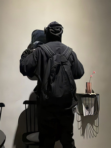 つや出しナイロンジッパーリュックサックファッションランドセルブラック日常通勤大容量リュックサック