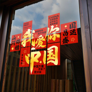 愛してる 中国のお祭り ショッピングモールの雰囲気装飾 十一装飾 静電ガラスステッカー 赤い窓飾り 2025