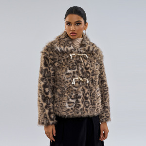 国境を越えた外国貿易欧米の女装の新製品は、ヒョウ柄のコートの街頭のファッション人が毛皮の毛皮の上着を真似ている