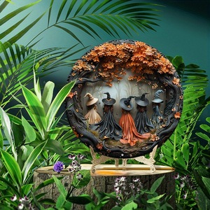 現物ハロウィーン木製フロントポーチ表札木製工芸品看板ハロウィーンパーティー装飾円形看板