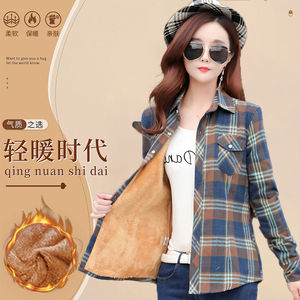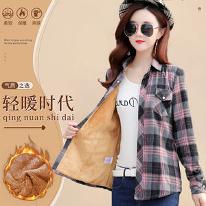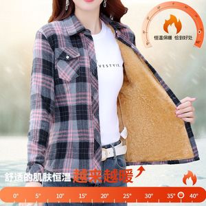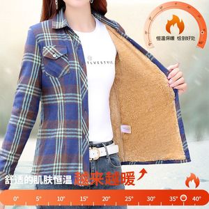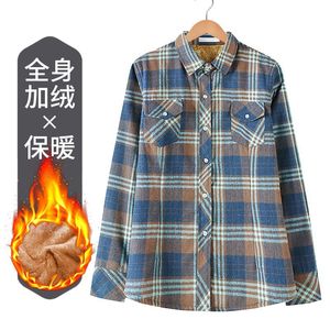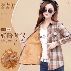 秋冬の新型ベルベットの厚いシャツの大きいサイズの韓国語ファッションは、暖かいシャツの格子の長袖ベルベットのシャツに合わせています
