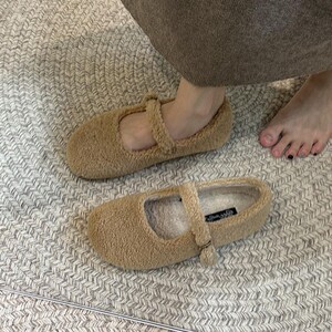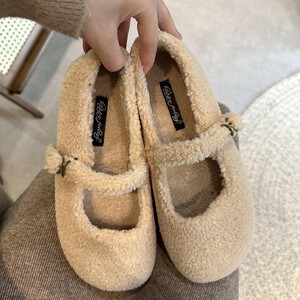 白いフレンチスタイルのフラットメリージェーンシューズ、秋冬用、2025年新作、柔らかい底の豆豆シューズ