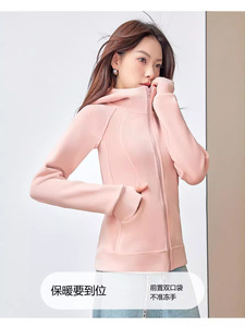 秋冬新作スリムフィットフード付きスウェットシャツ女性用秋冬両面オーリーベルベットウエストシェイプスリムジッパーカーディガンジャケット
