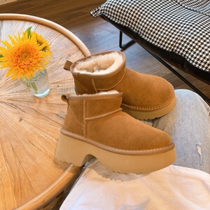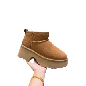 Han同款粗跟厚底高跟短筒雪地靴女冬季新款加绒加厚棉鞋短靴牛皮