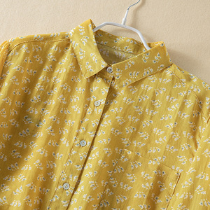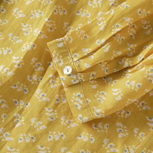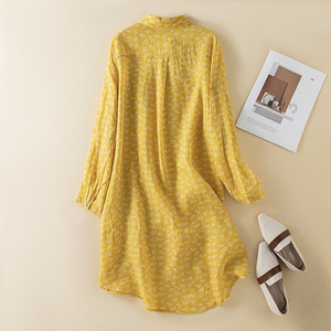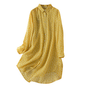 ゆったりとした痩せたプリントシャツの女性の秋の新商品の清新な綿麻長袖の中の長いカーディガン