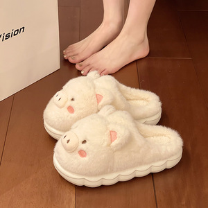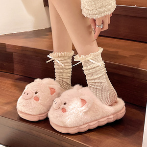 少女の心がかわいい子豚包頭綿スリッパ2024秋の柔らかい底の家の滑り止め保温学生の毛羽立ち