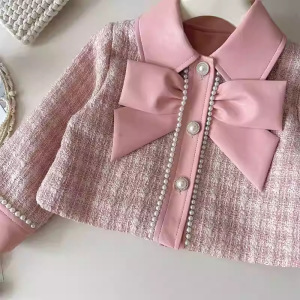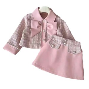 2025 Xiaoxiangfeng スーツ春と秋の新韓国スタイルファッショナブルなレディスタイル PU ジャケットスカートピンクスプライシングスーツ