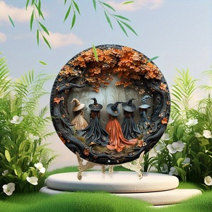 現物ハロウィーン装飾看板木製工芸品5つの魔女円形標識看板平安夜装飾品