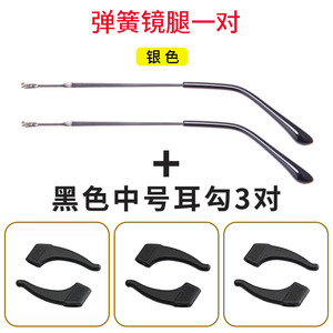 黒の中型滑り止めイヤーフック 3 組 + [スプリング テンプル] シルバー (ネジとドライバーが付属)