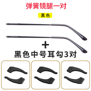 黒の中型滑り止めイヤーフック 3 組 + [スプリング テンプル] 黒 (ネジとドライバーが付属)
