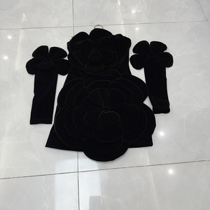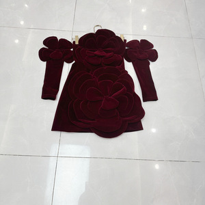 十三行法式小众重工丝绒立体花朵抹胸礼服连衣裙+花朵手套A3#8776