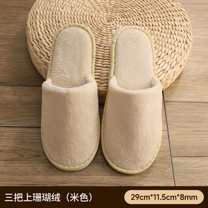 スターホテル厚い包頭コーラルベルベットスリッパ卸売B&Bホテルビューティーサロン滑り止め底使い捨てスリッパ