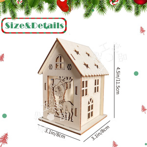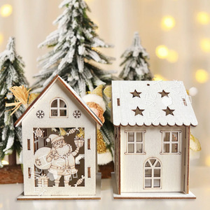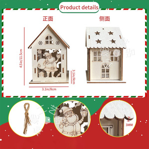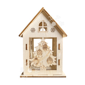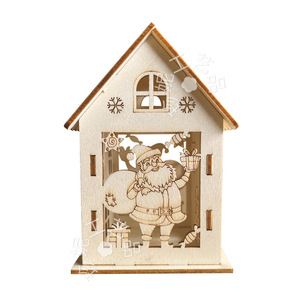 跨境圣诞节装饰木制diy小木屋 镂空圣诞树房子挂件木质装饰摆件品