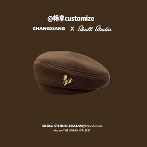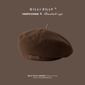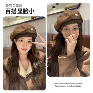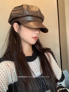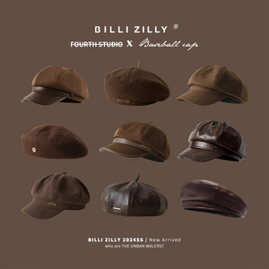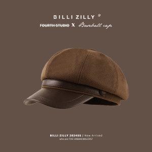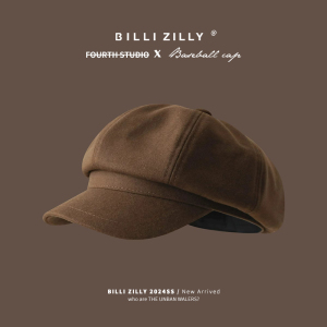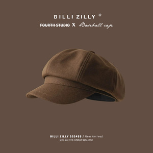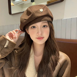 メイラードブラウンベレー帽レディース秋冬レトロ八角形キャスケットハット英国風文人画家帽子