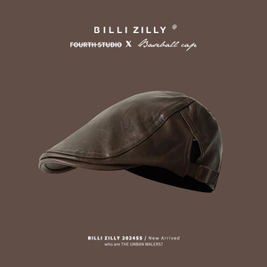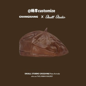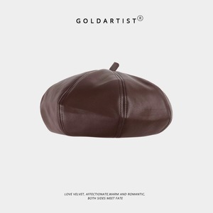 レザー ベレー帽 ブラウン