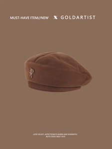 茶色のベルベットのベレー帽