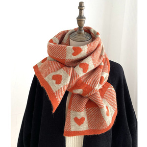 ネットの赤いニットの愛のマフラーの新型の女性の秋冬の白黒の格子のマフラーの学生はかわいいです。