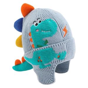 子供の小さな恐竜漫画耳保護帽子男の子ベビーニット帽子秋と冬の新しい子供のウール暖かい帽子男の子と女の子
