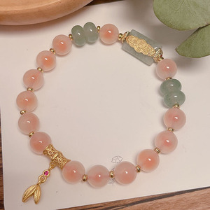 新しいピンクのオレンジの砂糖の心の瑪瑙のブレスレットの女性の大衆の高級感の新しい中国式の女性の蜜の手は寺院の観光地区の手をつないで飾ります。