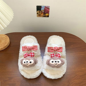 敲好穿可爱雪莉玫毛毛拖鞋女2025秋冬居家外穿保暖百搭一字棉拖鞋