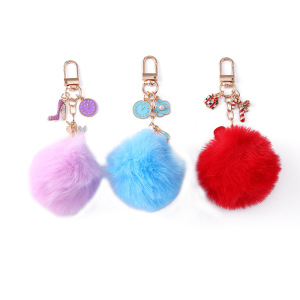新しいアイデアは、ウサギの毛玉のキーホルダークリスマス時計真珠貝殻のぬいぐるみのキーホルダーのバックパックに飾られています