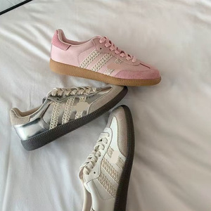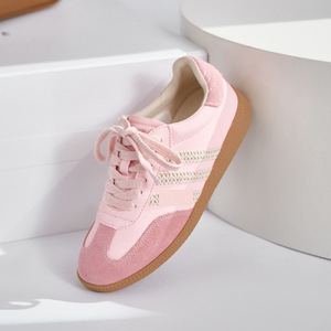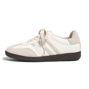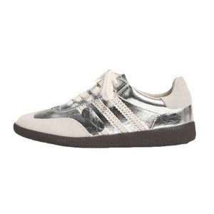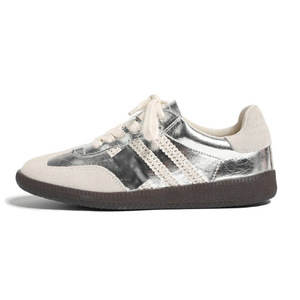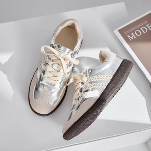 本革の銀色の徳訓靴の女性の柔らかい底の快適なレトロな平のレースの辺は阿甘靴のレジャーの運動の板の靴を結びます。