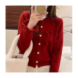 蝶結びの洋風の韓国版のニットのカーディガンのセーターの春と秋の新型の女性の上着の外は大衆のデザイン感の丸首を着ます。