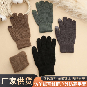 秋冬用保温手袋 無地 イミテーションカシミヤ ニット手袋 タッチスクリーン対応 アウトドア 防寒手袋 メーカー卸売