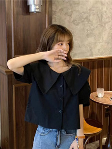 フランスのレトロな子供の襟の半袖のシャツの女性の夏の泡の袖のデザイン感の小さい大衆の気質の高い腰の短い上着