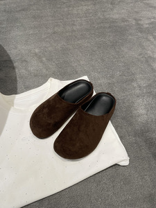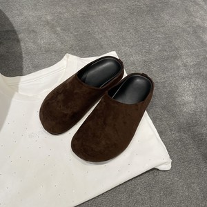 羊の皮の版 ~ 新型のカジュアルな厚い底のファッションの靴の平底は1足を合わせて包頭の復古の半スリッパの靴の女性を漕ぎます。