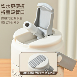 大容量茶水分離カップ花茶ステンレス保温カップ高颜値双飲ストローカップ携帯家庭用水筒