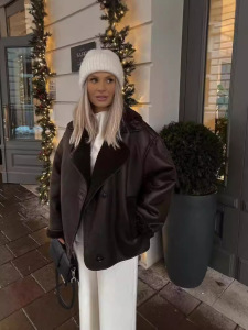 アマゾン秋冬新作おしゃれで上品なレディースファッション、トレンド感のあるレザーとファー一体型のリバーシブルジャケット