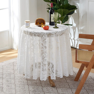 小さなアパートスペーステーブルクロス白ひまわりレースニットホーム小さなラウンドテーブルクロス学生寮テーブルクロス卸売