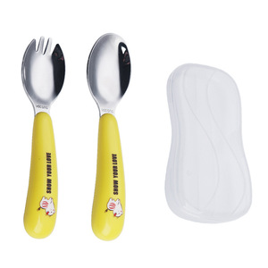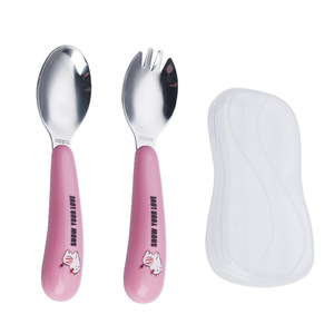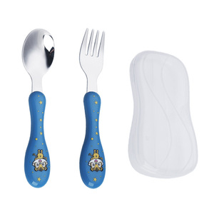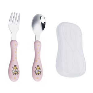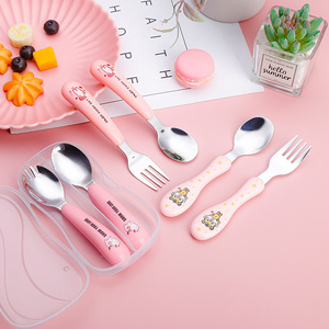 304ステンレス子供フォークスプーン漫画スプーンフォーク赤ちゃん学习トレーニングスプーン家庭用携帯食器セット