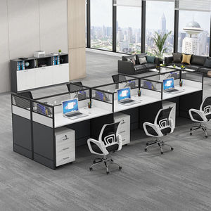 事務机と椅子の組み合わせステーションの事務机の従業員の机の1人4人余りの人の屏風のコンピュータのテーブルと椅子のセットのカードホルダー