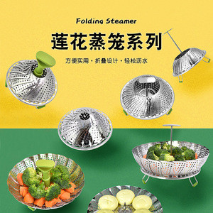 ステンレス折りたたみ蒸し器多機能伸縮蒸し器手持ち家庭用収納フルーツバスケット折りたたみ可能蓮蒸し器