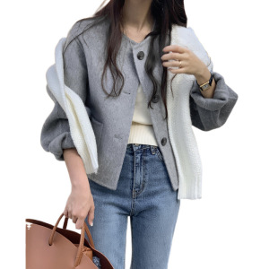 韓国のchi秋の優しい気質の丸首の単列のボタンはゆったりしています。