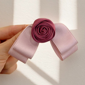 韓国系の赤いバラの花の髪飾りクリップの後頭部の蝶結びの半分は髪の側の前髪を刺して女性の額を挟みます。