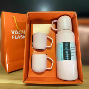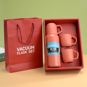 国境を越えた対外貿易の起爆金一杯三蓋保温カップセット304ステンレスストレートカップ卸売り手提げギフトボックスプレゼント