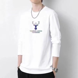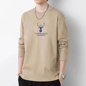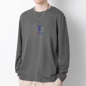 男性の秋のシンプルな牛乳のシルクの丸首のプリントの上着の青年の長袖の運動のカジュアルな百合のtシャツの底のシャツ