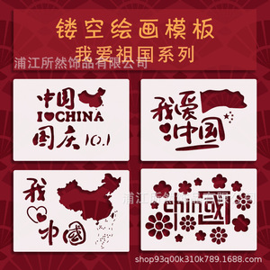 4種類の国潮風図案a 5愛国シリーズ美術教育用品の透かし彫り絵画拓印プラスチックテンプレート
