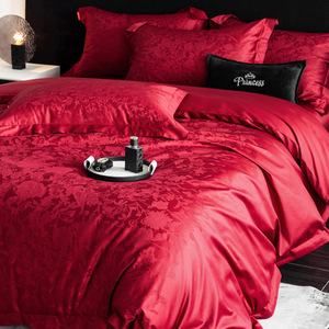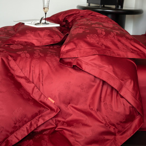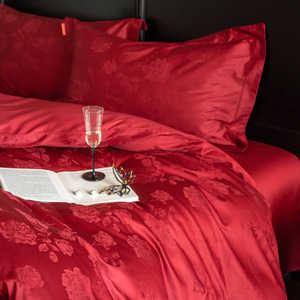 100本の結婚祝い綿綿綿綿功サテンは赤いベルベット綿のベッド用品の高級品を4セット持っている
