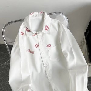 ネット赤のごろつきのかっこいいシャツの男性の長袖の港風bfの潮流のプリントのシャツの夏の薄いタイプのゆったりしている内はカジュアルな上着を掛けます。