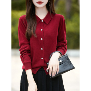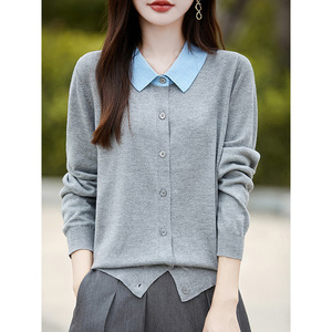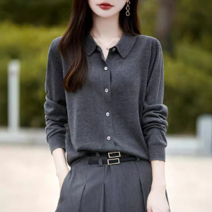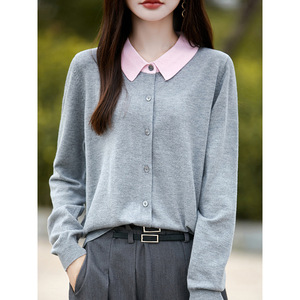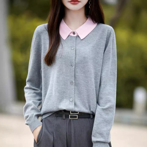 春と秋のPOLO襟のニットの女性のカーディガンはゆったりとした色を合わせています。