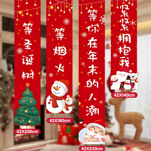 クリスマスの装飾品のバナーの店舗のパーティーのイベントのショーウインドーの背景の布は旗の木のシーンの配置を飾ります。