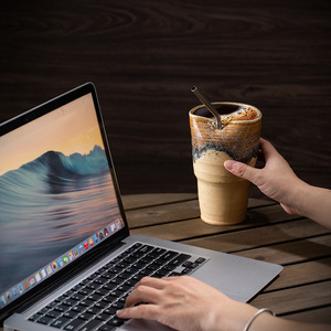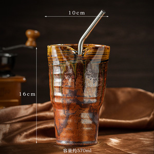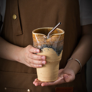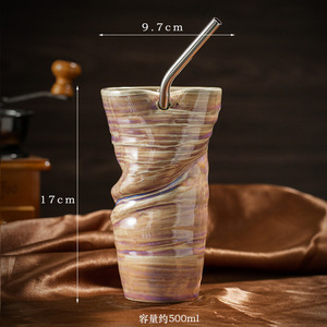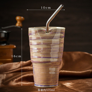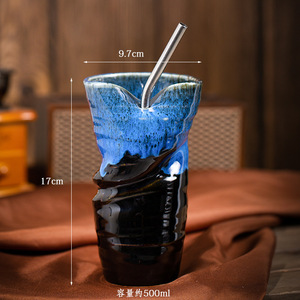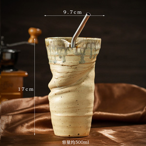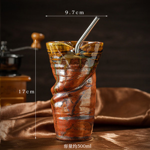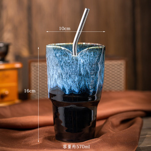 クロスボーダー窯変マグカップ異形大容量陶磁器カップストローカップ創意復古カップ粗陶コーヒーカップ