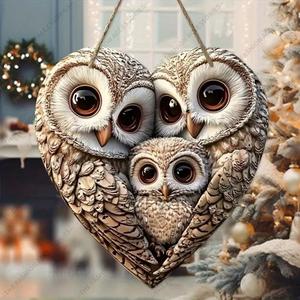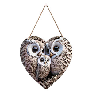 現物レトロ創意ハート型三匹のフクロウの木製吊り下げ札の壁飾りの家の装飾の表札の飾り